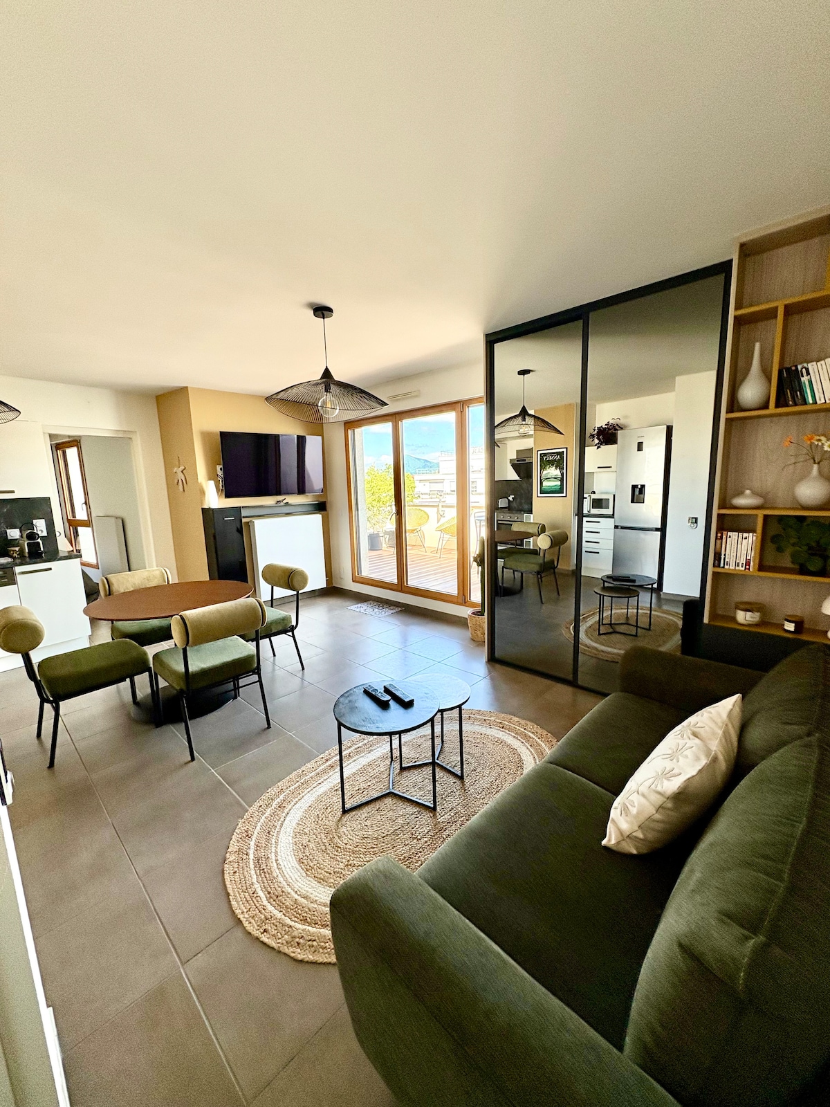 Nous vous accueillons dans notre studio de charme en Attique, au calme, idéalement situé dans une résidence neuve et sécurisée sur les hauteurs d’Annecy . Notre studio « Le Panorama « est un logement grand confort à l’ambiance raffinée et contemporaine pour accompagner un voyage d’affaires ou pour y séjourner. Atmosphère chaleureuse et intime. Vue imprenable sur le lac, les chaînes de montagnes et la ville d’Annecy vous offrant un environnement d’exception.