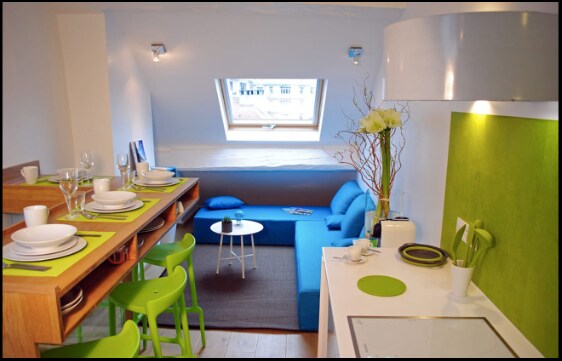 位于市中心的单间公寓,靠近湖泊