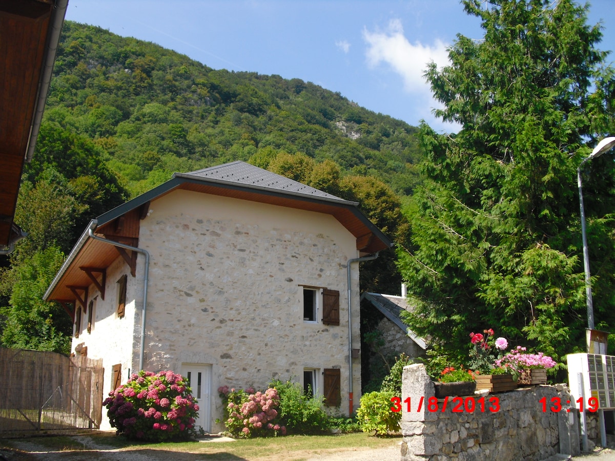 We rent an appartement with one bedroom, a living room with kitchen and bathroom, in an old renovated farm in a charming small village overlooking the Lac de Bourget. It's very quiet here, the house is on a dead end street, yet you are close to major cities (Geneva, Lyon, Annecy, Chambery, Aix-les-Bains) and have plenty of outdoor sports opportunities : hiking, swimming, mountain-climbing , motorboat rental, cayak, canoeing, bicycle riding. The next ski resorts are about a one hour drive