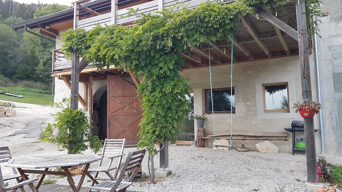 Bienvenue au gîte Les champs des Possibles à Viuz en sallaz ! Appartement dans un ancien corps de ferme haut-savoyard, en rez de jardin entièrement rénové. A 10 min de la station de ski des Brasses et en plein coeur de la Haute-Savoie. Toute l'année, vous pourrez profiter d'un accès à un espace spa intérieur avec jaccuzzi et bassin avec nage à contre courant. Orienté plein sud, vous aurez un ensoleillement maximum !