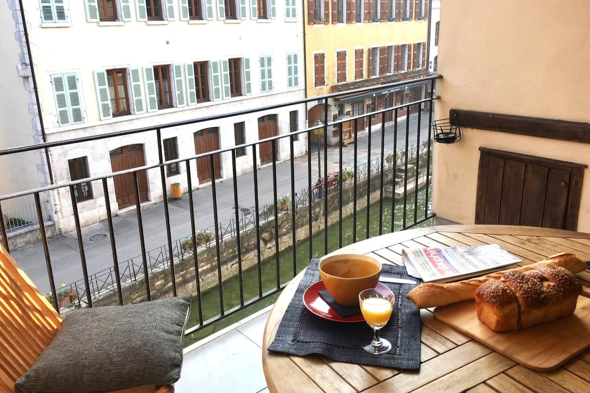 Bienvenue Sur le Thiou ♡ Superbe loft au cœur de la vieille ville, à 100m du lac. Appartement d'une surface de 55m² avec terrasse surplombant le canal du Thiou. Profitez d'une belle vue dégagée, au calme tout en séjournant au cœur de la cité du Moyen Age. Offrez-vous un voyage dans les couloirs du temps. Sur le Thiou possède tout l'équipement et le confort nécessaire pour passer un agréable séjour d'affaires ou de loisirs.