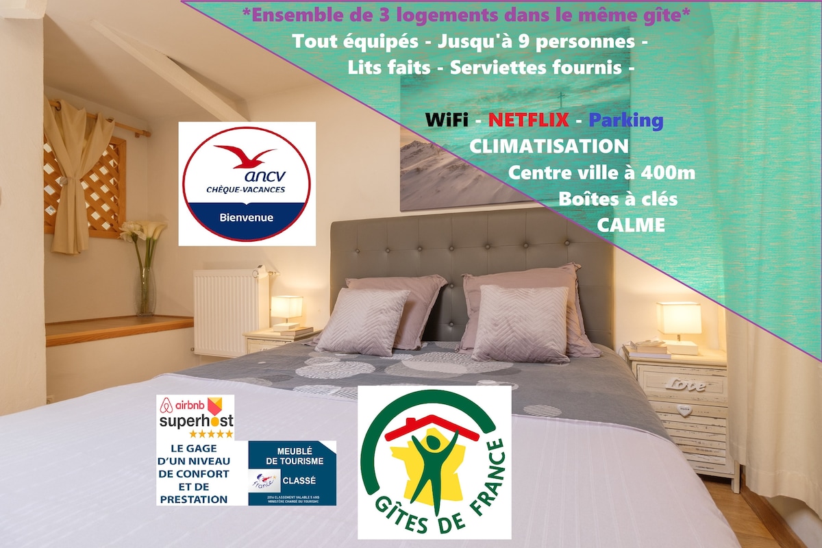 Apartment on the ground floor totally independent, adjoining the owners: Entrance / equipped kitchen, dining room Living room with TV and 2-seater sofa bed (140X190 mattress) Large bedroom with direct access to the bathroom. 160 X 200 bed and high quality bedding. A daybed that sleeps two more for one person. Corridor leading to the kitchen, the separate WC, a storage space and the bathroom. Bathroom with walk-in shower, large sink.