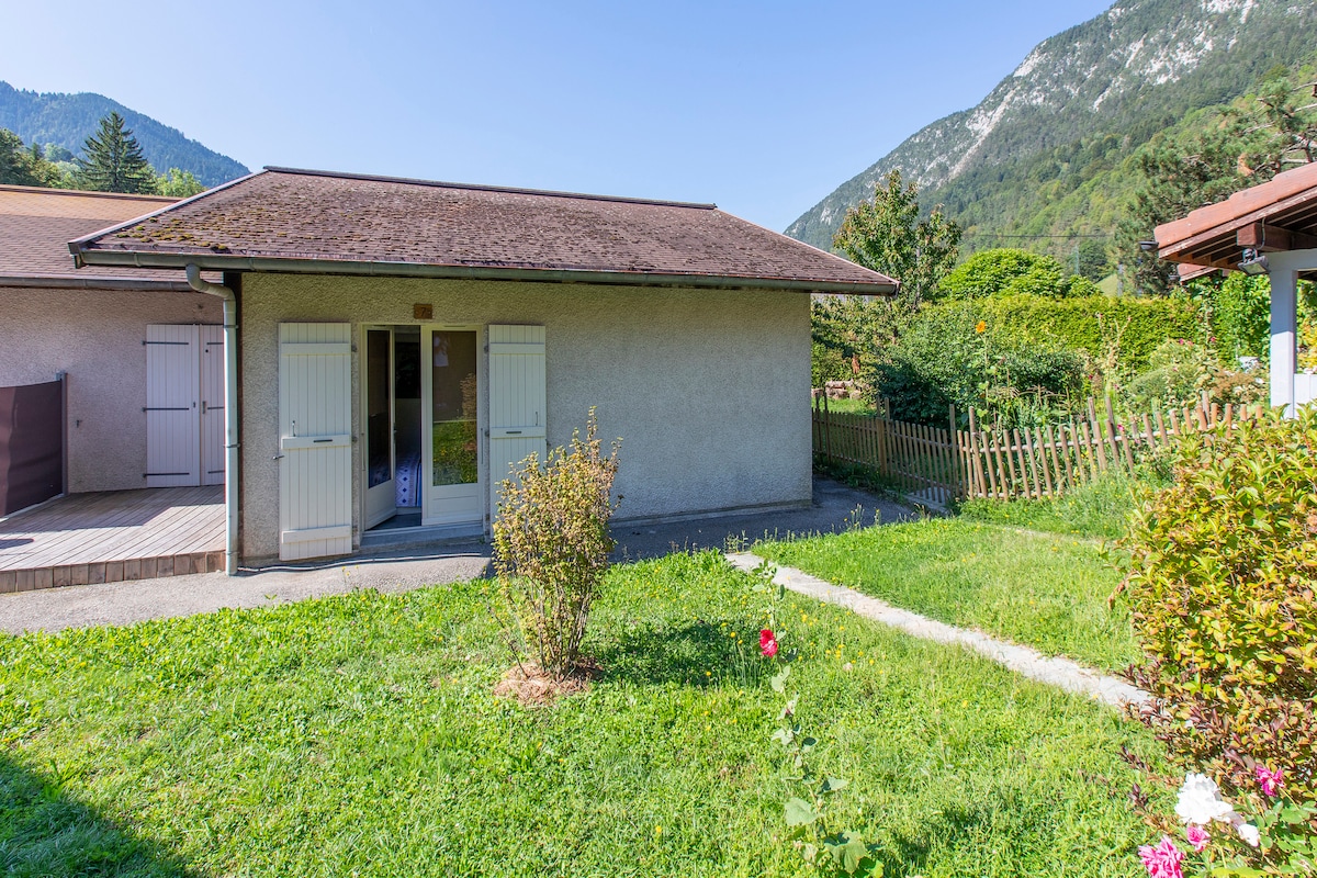 Studette situé en rez-de jardin d'une maison savoyarde rénovée en 2022. Très belle vue sur les montagnes (Dents de Lanfon et Tournette), à proximité du lac et de la plage, proche du centre. Ce logement comprend une kitchenette (1 plaque de cuisson, 1 petit évier, 1 petit réfrigérateur, 1 four micro-ondes), une table et 2 chaises, une salle de douche, un canapé haut de gamme convertible en lit, 1 tv. Un coin jardin est à votre disposition avec transats et table d'extérieur. Parking privé.