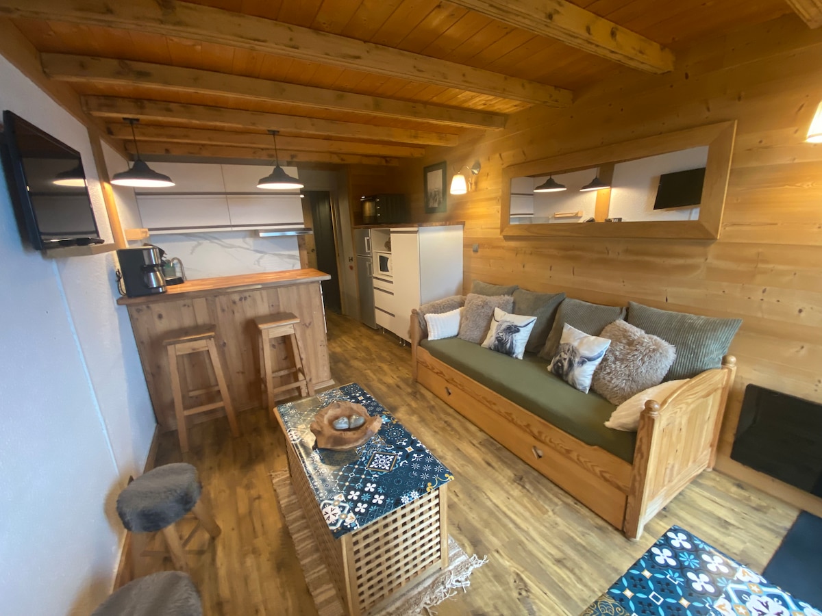 Ce logement paisible offre un séjour détente pour toute la famille. Cosy et chaleureux. Situé dans une résidence en rez-de-jardin d'une superficie de 28 m2 et classé meublé de tourisme ** par Gîtes de France. Terrasse plein Sud avec vue sur le massif du Beaufortain. Composé d'une cabine avec un lit superposé, d'une Salle de Bain, d'une douche et WC. Couloir avec dressing et une pièce à vivre avec coin cuisine. Départ des pistes à 150 mètres retour à ski à 50 mètres de l'appartement.