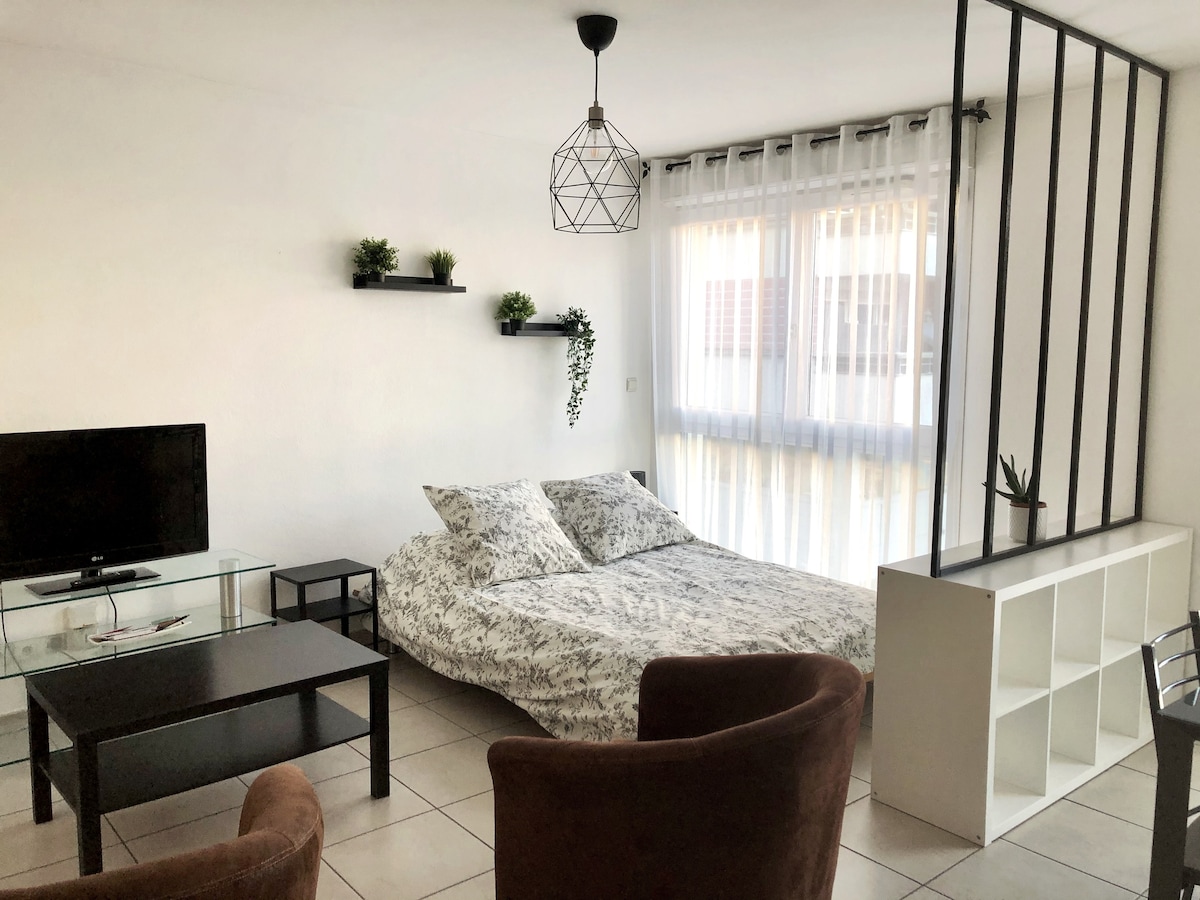 Idéalement situé à 400 mètres du lac et à moins de 10 minutes à pied de la gare, notre studio vous offre un emplacement privilégié à proximité immédiate des commerces, restaurants, bars, cinéma et transports. Entièrement rénové et soigneusement équipé, il allie praticité et confort. 🛏️ Pour votre bien-être, nous avons récemment remplacé l’ancien canapé-lit par un lit double 140x200 avec matelas Emma, reconnu pour sa qualité et son confort, afin de vous garantir des nuits paisibles et reposantes