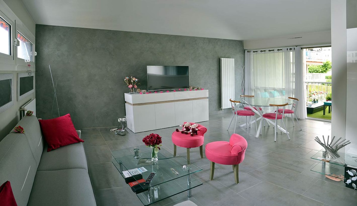 Magnifique appartement de 70m2 face au lac, niché au coeur d'une résidence récente de grand standing et idéalement situé, dans le très prisé quartier d'Albigny. Vous y trouverez commerces, transports en commun et excellents restaurants à proximité, un petit village à 2 pas du centre ville d'Annecy. Aussi nous vous proposons une logement unique avec une ambiance bohème, qui vous fera voyager.