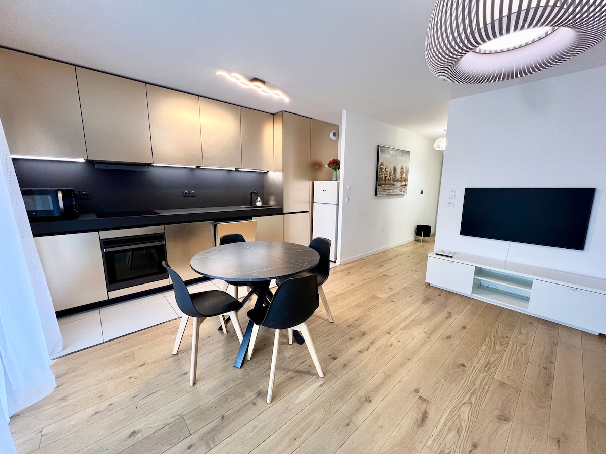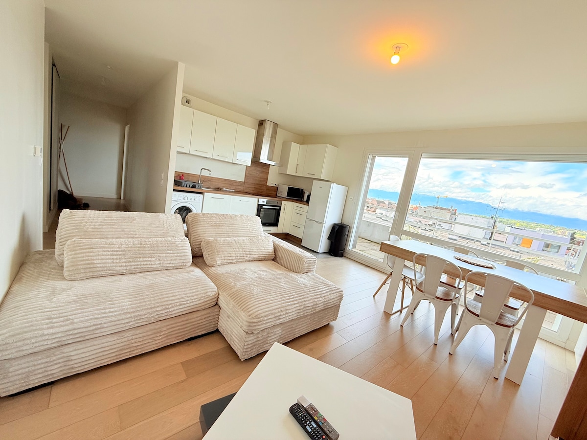 Superbe appartement entièrement rénové et décoré avec raffinement, niché au 4ème étage, offrant une vue imprenable sur la chaîne du Jura. Idéalement situé à deux pas des transports et des commerces, cet appartement séduit par son élégance et son confort. Il se compose d'un vaste séjour avec un canapé convertible, une cuisine ouverte équipée et d'une chambre spacieuse dotée d'un lit double.Celle-ci s'ouvre sur un charmant espace extérieur, parfait pour profiter de moments en toute tranquillité.