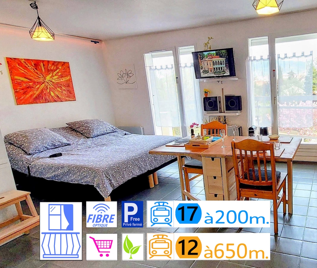 Faites une pause et détendez-vous dans cette oasis paisible au coeur des montagnes. Ce magnifique studio refait à neuf se situe dans le triangle d'or, à moins de 30 minutes de Genève, 45 minutes d'Annecy et Chamonix. Vous aurez accès aux différents espaces extérieurs ainsi qu’aux stations de ski à proximité : Les Brasses, Les Gets, Morzine, Châtel, Avoriaz, Samoëns. À partir du 15 mai, la piscine extérieure est accessible jusqu’au 15 septembre. Logement idéal pour un séjour à 2.