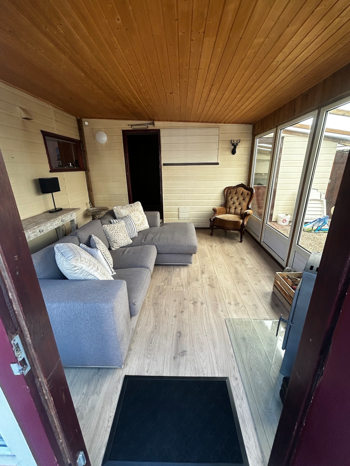 Mooie vakantiewoning met grote slaapkamer en keuken met kookgelegenheid en afzuigkap. Verder voorzien van een koelkast met vriezer en oven/magnetron. De sfeervolle woonkamer met landelijke stijl heeft een 2 x 2 persoons bank en eetkamertafel voor 4 personen. De woonkamer is voorzien van een houtkachel die men kan gebruiken (houtzakken leverbaar voor € 6,00 p/st). De woning is uiteraard voorzien van internet en TV. Er is een afsluitbare fietsenschuur met stroomaansluiting ( opladen e-Bike)