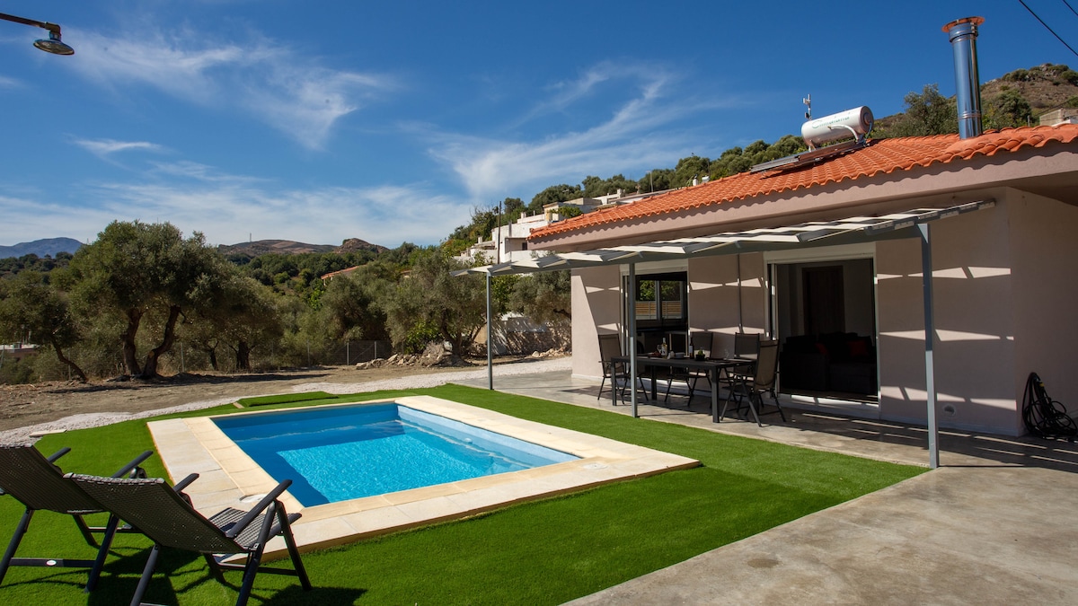 Escape to a unique exotic villa in Myli Gorge, just 15 minutes from Rethymno. This three-bedroom villa combines traditional stone architecture with a warm, rustic atmosphere and features a one-of-a-kind natural pool. A 5-minute path leads you to the villa, where you can enjoy a meal at a nearby taverna or unwind in a peaceful setting. Ideal for both relaxation and exploration, with hiking trails and historic landmarks just a short distance away.