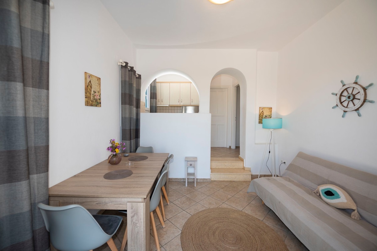 New, fresh and luxury apartment in a peaceful neighborhood only 900 meters from the famous Ornos beach, 1 km from Korfos beach( the best beach on the island for kitesurfers) and 7 minutes drive from Mykonos Town. The ideal location, the unique ambience and the breathtaking view make Ornos Vibes the best choice for the summer vacations in Mykonos. Perfectly combined with Ornos Vibes 2 for a total capacity of 8 guests.
