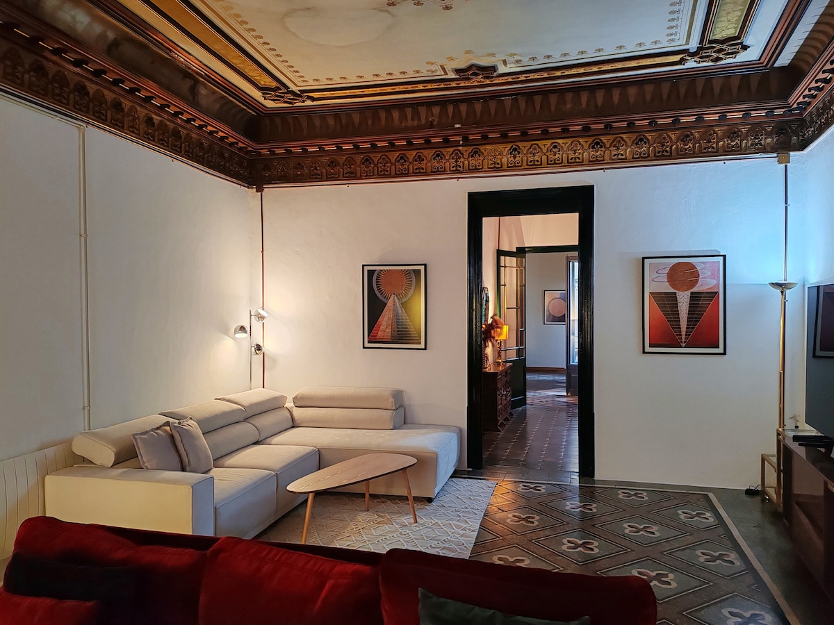 Unusual, very spacious, "Art Nouveau" flat with recepcion hall, studio, dining, living-room, galery, two bedrooms, kitchen and bathroom. An architectural experience in the Modernista Barcelona of 1906 Located in the area of Gracia in Plaza Lesseps