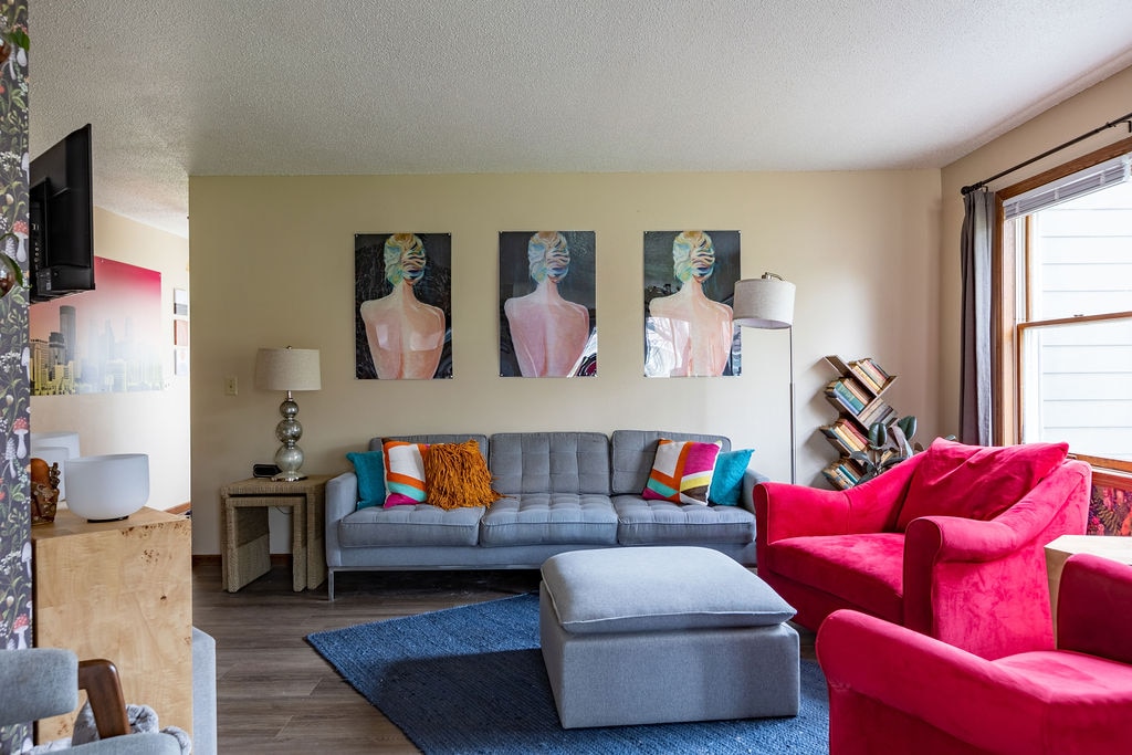 Spacious 4BR/2BA home in a quiet Coon Rapids neighborhood—ideal for families, groups, or business stays. Features a fully equipped kitchen, cozy living room with TV, and comfortable bedrooms with a king, queen, and bunk beds (twin & full). Enjoy a large backyard with deck, fire pit, BBQ grill. Washer/dryer included. Parking for 4 cars plus 2-car garage. Close to Northtown Mall, parks, National Sports Center, hospitals, and easy access to Minneapolis & St.Paul. Pet-friendly. Easy self check-in.