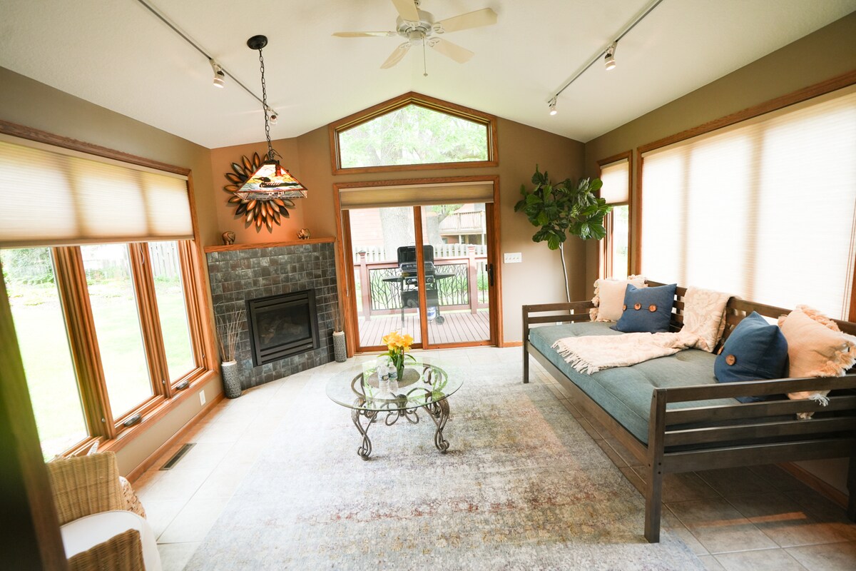✨ Women-Owned | Privately Hosted ✨ Peaceful 4BR near Medicine Lake, French Regional Park, Lake Minnetonka & a short drive to Downtown Minneapolis, Target Center, U.S. Bank Stadium & MSP Airport. ✅ 2 King, 1 Queen, 3 Twin Beds ✅ Full kitchen + deck + yard ✅ Workspace + strong WiFi Near Ridgedale Mall, parks, trails & shopping. Perfect for families & remote workers.