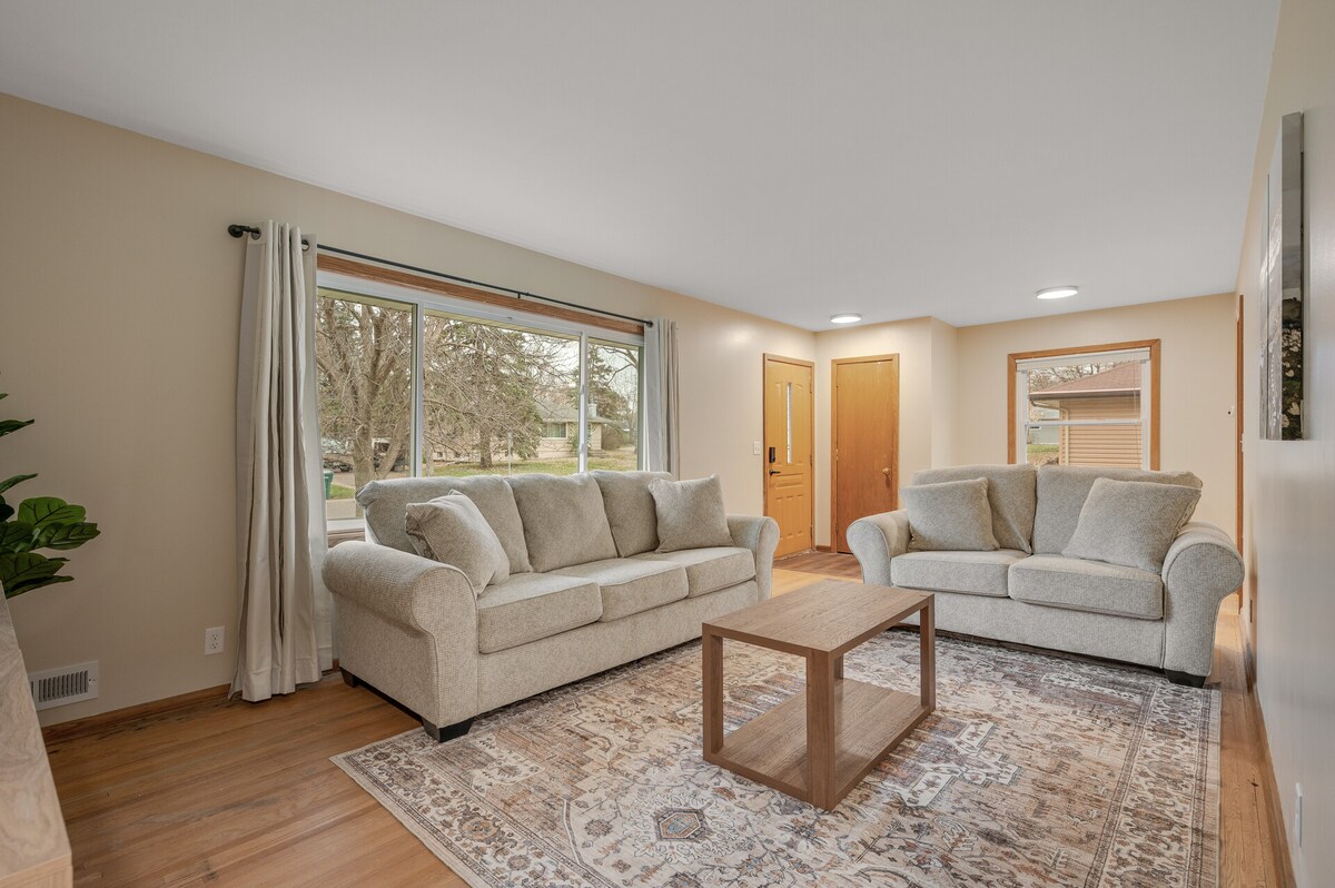 **Midterm Rental: Travel Nurses, Corporate Housing, and Insurance Placement Welcome** This cozy home is the perfect base for exploring the surrounding area. It's only 5 mins away from the National Sports Center, TPC and less than 30 mins from downtown Minneapolis & St Paul. Your vacation home is furnished with comfort as the top priority, including a well-equipped kitchen, 4 spacious bedrooms, a game room, and a private backyard.