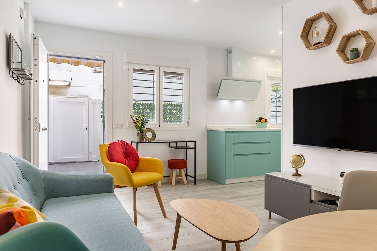 Our sea-front apartment is centrally located, perfect for couples looking to enjoy a few days in Málaga, with its beautiful beach, old town, and scenic surroundings. The apartment is spacious, bright, and offers stunning sea views. Fully renovated in 2019 and with regular updates, it features a bedroom area, full kitchen, bathroom with shower, open terrace, and living room. You'll have everything you need for a comfortable stay: a cozy bed, fast Wi-Fi, air conditioning, and a large smart TV.