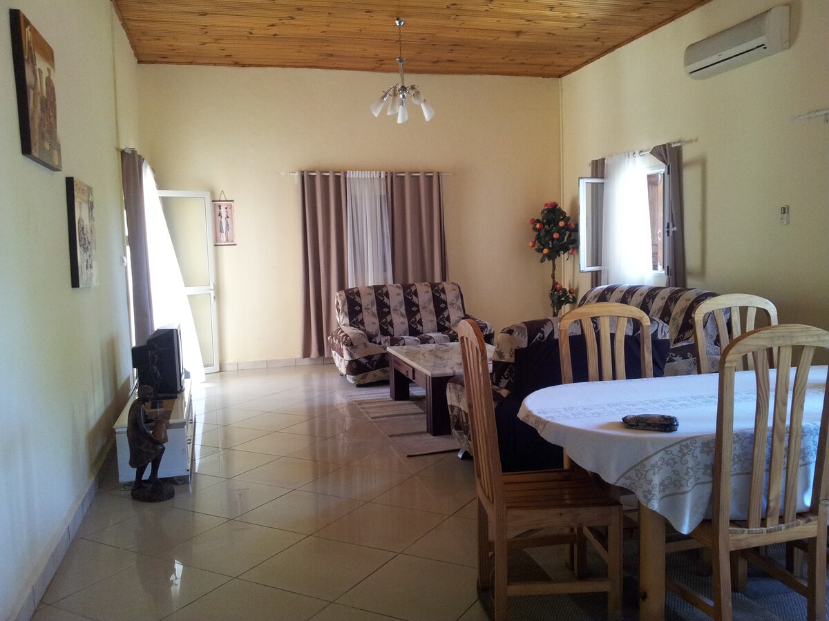 Venez vous détendre dans cette maison meublée. Maison avec 2 chambres pour 4 personnes au total. Equipée d'une grande terrasse capable d'accueillir un grand nombre de personnes et partager un moment de convivialité sous les cocotiers. Fort-Dauphin est une ville avec un climat chaud et humide, vous apprécierez de vous détendre en plein air au milieu des cocotiers. Accessible en voiture avec possibilité de stationner dans la cour. Un gardien est présent sur place 24H/24.