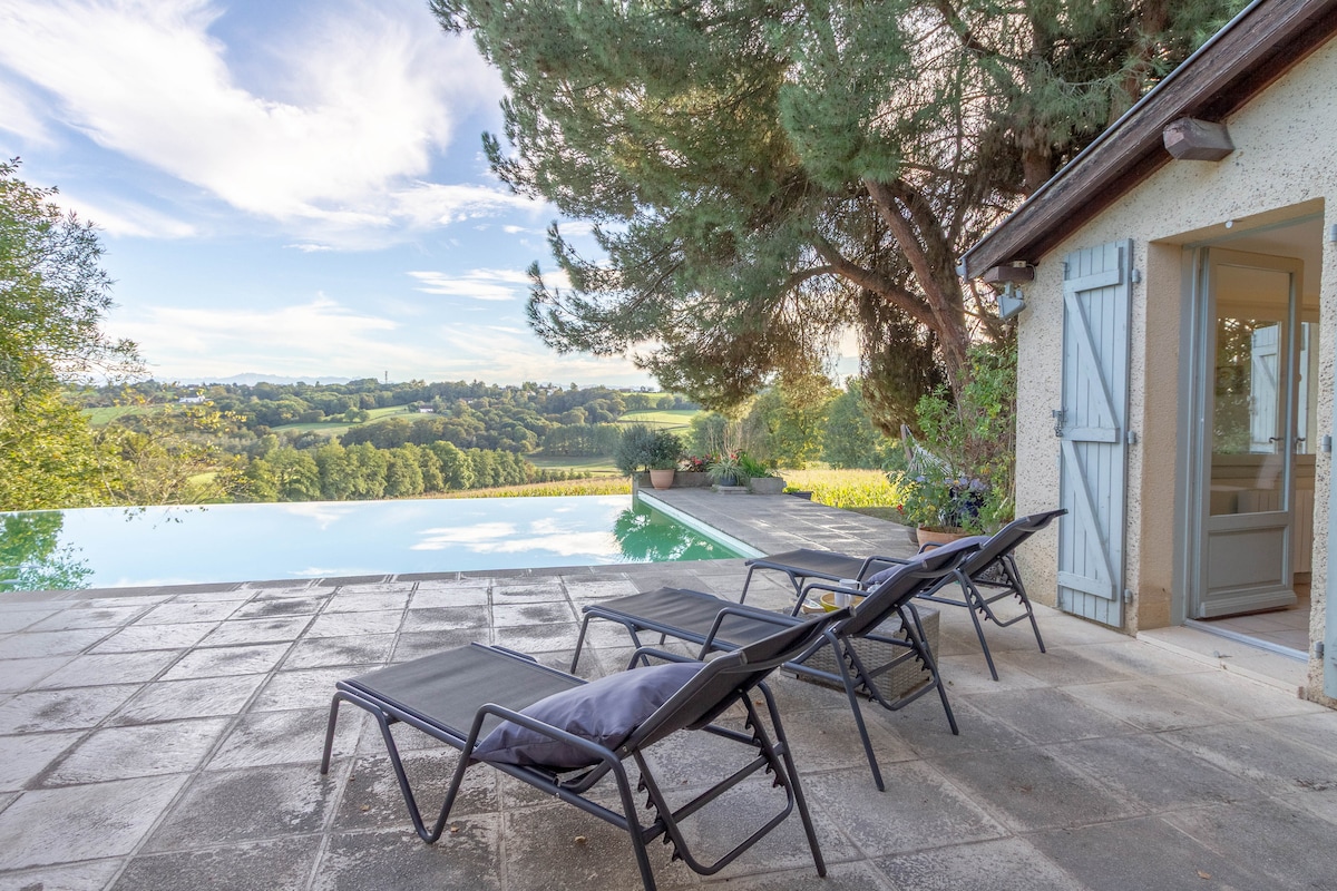 Welcome to GÎTE LES PICS DU M A breathtaking view of the Pyrenees in the calm of the countryside in the village of Layrisse, very comfortable and bright Located equidistant (13 km) and in the heart of the triangle between Tarbes, Lourdes and Bagnères-De-Bigorre, 10 minutes from the international airport, 15 mn from the Tarbes and Lourdes train stations, 45 mn from the ski resorts 80 m² south-facing terrace with Jacuzzi, garden furniture, deck chairs, garden, private parking 2 mountain bikes free