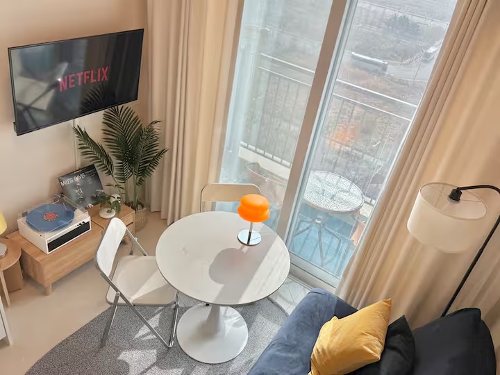 바다뷰와 공원뷰가 함께 보이는 감성적인 공간에서 LP 음악과 빔프로젝터로 여유로운 하루를 보내보세요. 아무것도 하지 않아도 좋은, 온전히 쉬어가는 숙소입니다. 숙소는 영종도 하늘도시에 위치하며, 구읍뱃터까지 차량으로 약 5분, 인천공항까지는 약 15~20분 거리에 있어 여행과 휴식 모두 적합합니다. 숙소는 복층 구조로 소파와 테이블이 있는 거실이 마련되어 있으며, 턴테이블과 LP 음악, TV와 빔프로젝터로 여유로운 시간을 즐기실 수 있습니다. 은은한 조명과 포근한 분위기 속에서 하루의 속도를 천천히 낮춰보세요. 2층에는 퀸사이즈 침대가 준비된 침실이 있어 편안한 휴식을 제공합니다. 또한 1층 소파베드는 추가 침대로도 활용 가능합니다. 주방에는 간단한 요리가 가능한 조리도구와 다양한 잔이 준비되어 있어 커피부터 와인까지 자유롭게 즐기실 수 있습니다. 바다와 음악, 그리고 영화가 함께하는 이 공간에서 오래 기억에 남는 특별한 하루를 경험해보세요.