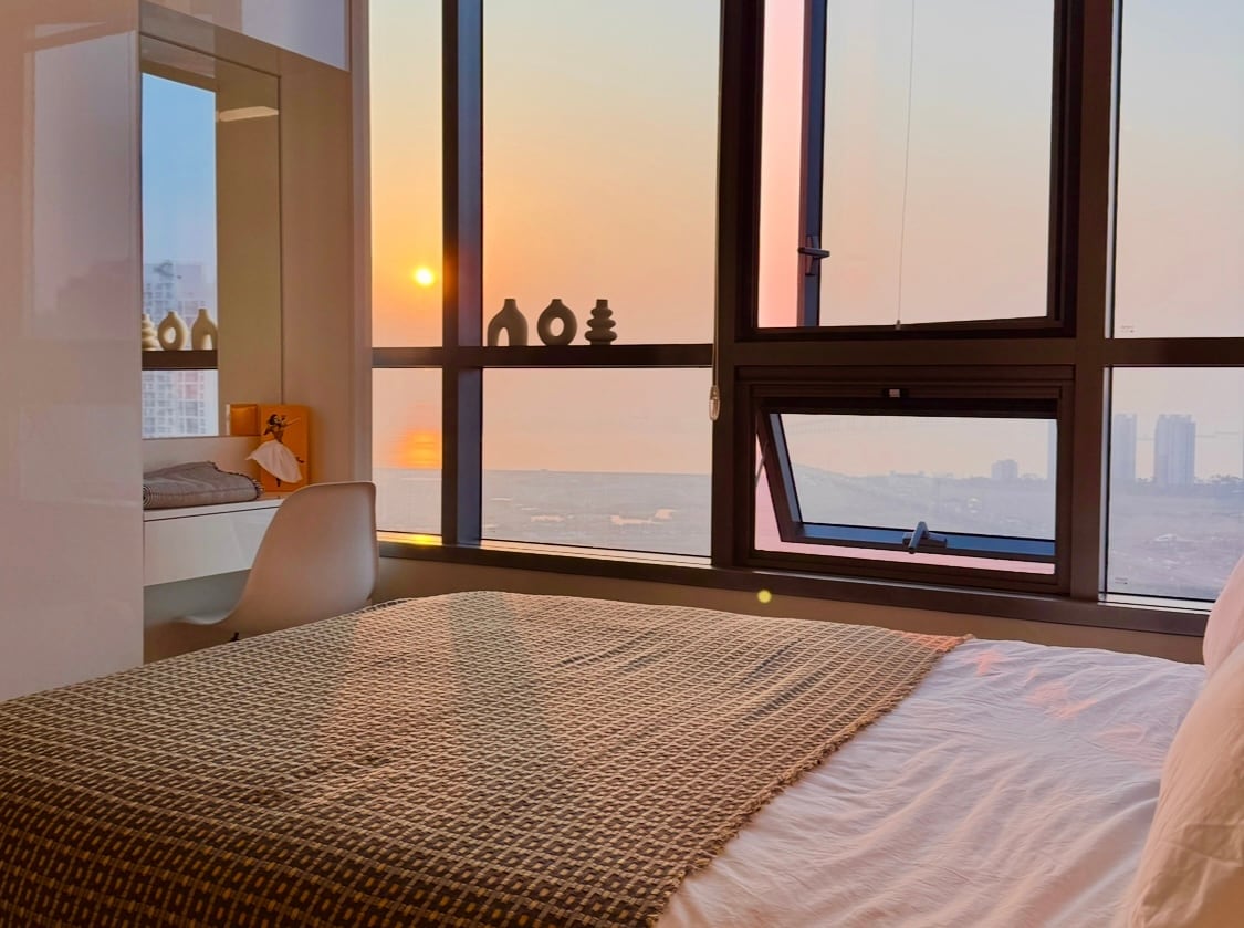 🌇 Breeze 32 | 32층 오션뷰 스테이 탁 트인 오션뷰를 담은 차분한 공간입니다. 창밖으로 인천대교와 바다가 시원하게 펼쳐지고, 해질 무렵엔 서해 노을이 객실을 은은하게 물들입니다. 복잡함 대신 정돈된 휴식을 원하는 분들께 어울립니다. ✅ 추천 스테이 - 여행 / 기념일 - 출장 - 장기숙박 ✈️ 동선도 효율적 입·출국 전후나 출장 일정에도 편하게 이동할 수 있습니다 ✨ 📍 위치 🚉 달빛축제공원역 도보 5분 📍 송도 국제업무지구 차량 3분 ✈️ 인천공항 차량 30분(약 31km) 🛍️ 송도 현대프리미엄아울렛 / 트리플스트리트 / 센트럴파크 인접 🎤 달빛축제공원 행사 접근 편리 (펜타포트·맥주축제 등) (행사 일정은 주최 측 공지에 따라 변동될 수 있습니다.)