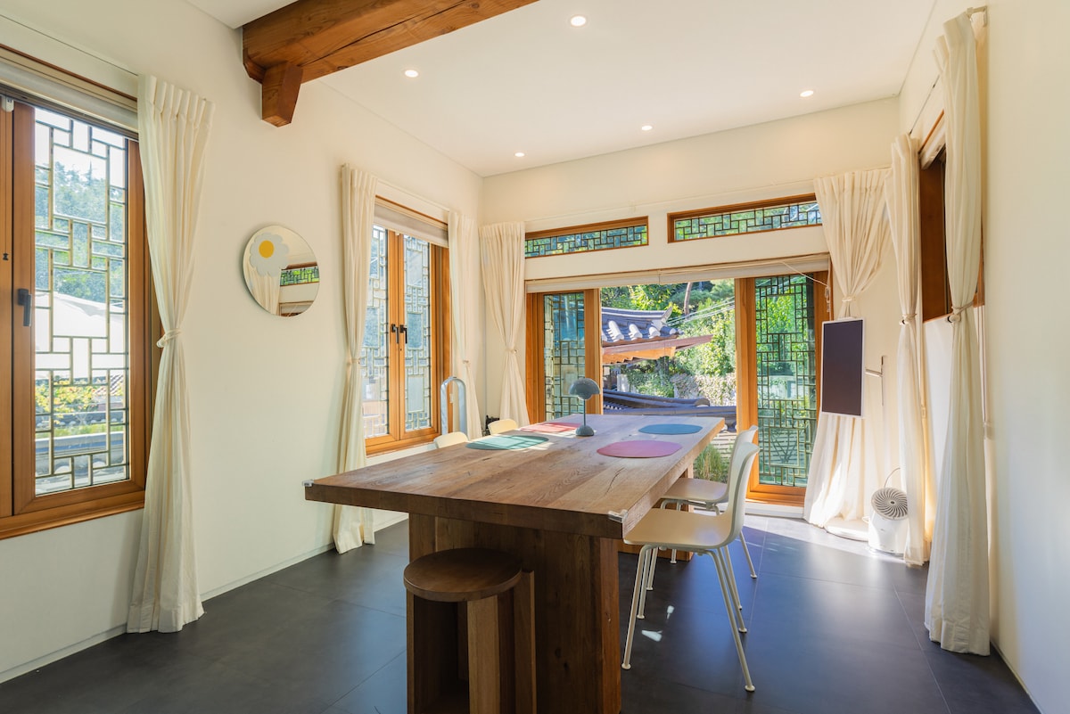 - 1929년 지어져, 3년 전 리노베이션 한 96년된 전통 한옥입니다. 한옥의 100년을 시각적으로 표현하고자 다양한 시대를 대표하는 동서양의 디자인 가구들로 채워 놓았고, 오래 전부터 이 집에 있던 고재와 부속품을 최대한 살려서 복원하였습니다. - 역사와 전통의 중심지. 유명 관광지 도보 여행 가능 - 24시간 편의점과 공항버스 정류장까지 도보 5분 이내, 지하철역까지 도보 5분 거리. - 숙소 바로 옆에 서울의 레스토랑/카페/쇼핑 상점이 수백개 있습니다. - 수하물 보관/공항 픽업 가능. - 초고속 인터넷 와이파이, 유튜브 / 넷플릭스 프리미엄 시청 가능 - 조용하고 편안한 분위기 : 서울의 중심부에 위치해 있지만, 한옥 안에 들어오면 마치 시간 여행을 온 듯 놀랍도록 조용하고 고즈넉한 분위기에 놀랄 거예요. - 각 공간의 매력을 천천히 즐기시면서, 나와 소중한 사람들의 좋은 추억을 만드시고 잠시나마 몸과 마음의 피로를 회복하는 시간 되시길 진심으로 바랍니다.