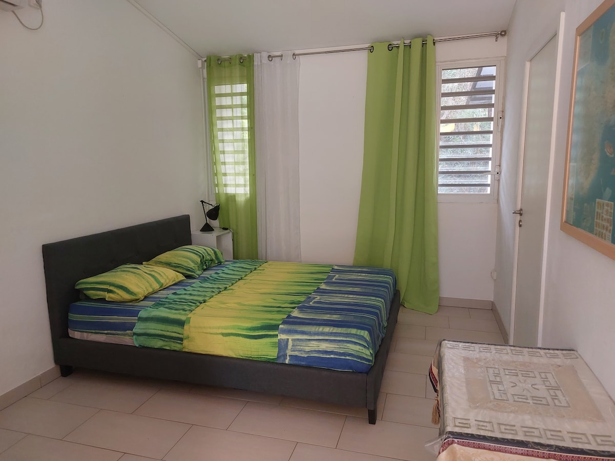 Venez passer vos vacances dans ce beau logement logé dans un écrin de verdure, au calme et au plus proche de la nature. Petit déjeuner fait maison compris avec la location. Vous aurez tout le confort à votre disposition ainsi que l'accès privé à la piscine et au carbet. Idéalement situé sur l'ile, vous pourrez vous déplacer facilement (5 min de la cascade aux écrevisses et randonnées, 30 min de la réserve Cousteau, 20 min des plages du Gosier). L'accueil y sera toujours chaleureux et discret.