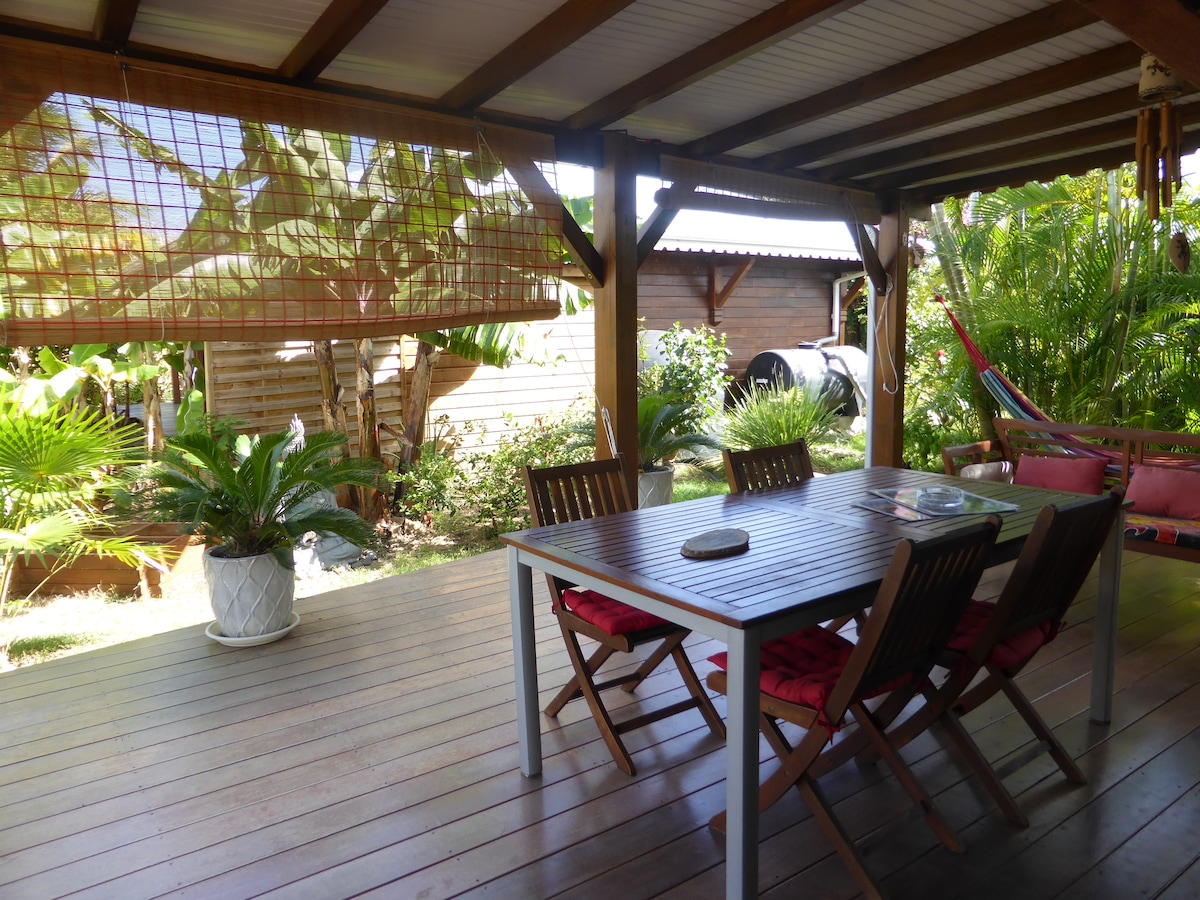 Charmant bungalow en bois, classé 3 étoiles ( pour 2 personnes mais pouvant accueillir jusqu'à 4 personnes) situé à proximité immédiate du bord de mer et de ses plages. Il a été construit dans l'esprit "cabane" et il se situe dans un endroit bien ventilé à l'entrée de notre jardin. Vous profiterez au réveil du lever de soleil sur la terrasse. Au coucher, vous serez enivrer par le parfum d'Ylang Ylang et bercer par le chant des grenouilles.