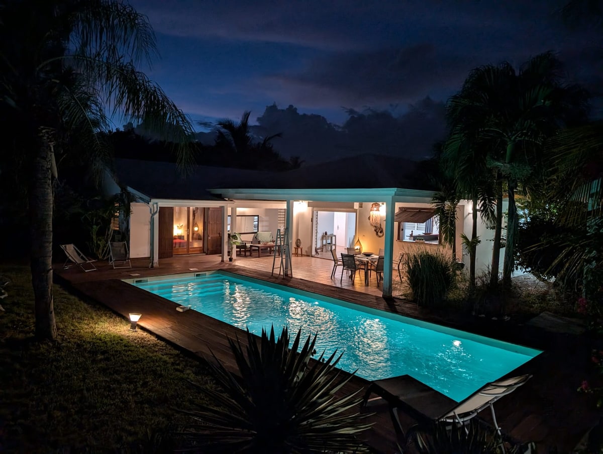 La Petite Villa possède 2 chambres climatisées, avec chacune sa salle de bain. Vous passerez de très bons moments dans la piscine de 3x5 m, sa terrasse couverte vous permet de prendre vos repas en extérieur. La décoration est soignée et le mobilier a été spécifiquement choisi par les propriétaires. La plage de Gros Sable et le chemin côtier sont à 450 mètres à pied. Citerne d'eau de 1200 l présente pour palier aux éventuelles coupures d'eau. Wifi Gratuit. Parking facile à l'intérieur.
