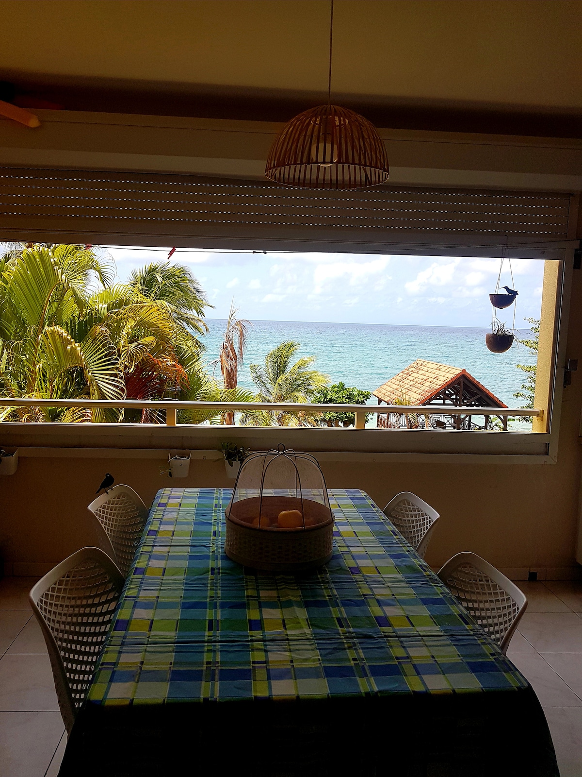 Appartement neuf, arboré avec vue sur mer et l’horizon. Cadre apaisant, relaxant sans vis à vis Wifi, chaines câblées et Netflix Vue sur mer et rocher du Diamant Un coucher de soleil imprenable et différent chaque jour Proche de la plage avec ses mini marché de fruits et légumes, snacks, crêperie et restaurants (5 mn à pieds), des commerces (8 min en voiture) Situé au sud de l'île, sur la route des plages, du Marin et de sa marina Parking et entrée privée Hôtes disponibles et accessibles
