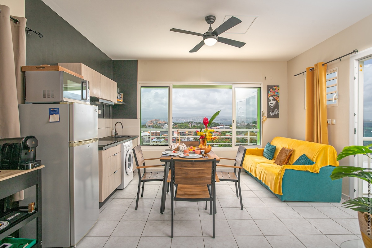 Nouveau, entièrement neuf! Situé dans une résidence sécurisée sur les hauteurs de l'Anse à l'Ane aux Trois-Ilets, avec une vue imprenable sur les mornes, notre logement saura vous séduire pour que vous passiez des vacances inoubliables. Vous aurez à disposition une petite piscine privée de 2m50*2m50 et la plage est à 500 mètres. A 2 minutes en voiture vous trouverez une supérette, une boulangerie, un vendeur de fruits et légumes, un tabac-presse ainsi que des restaurants et bars de plage.