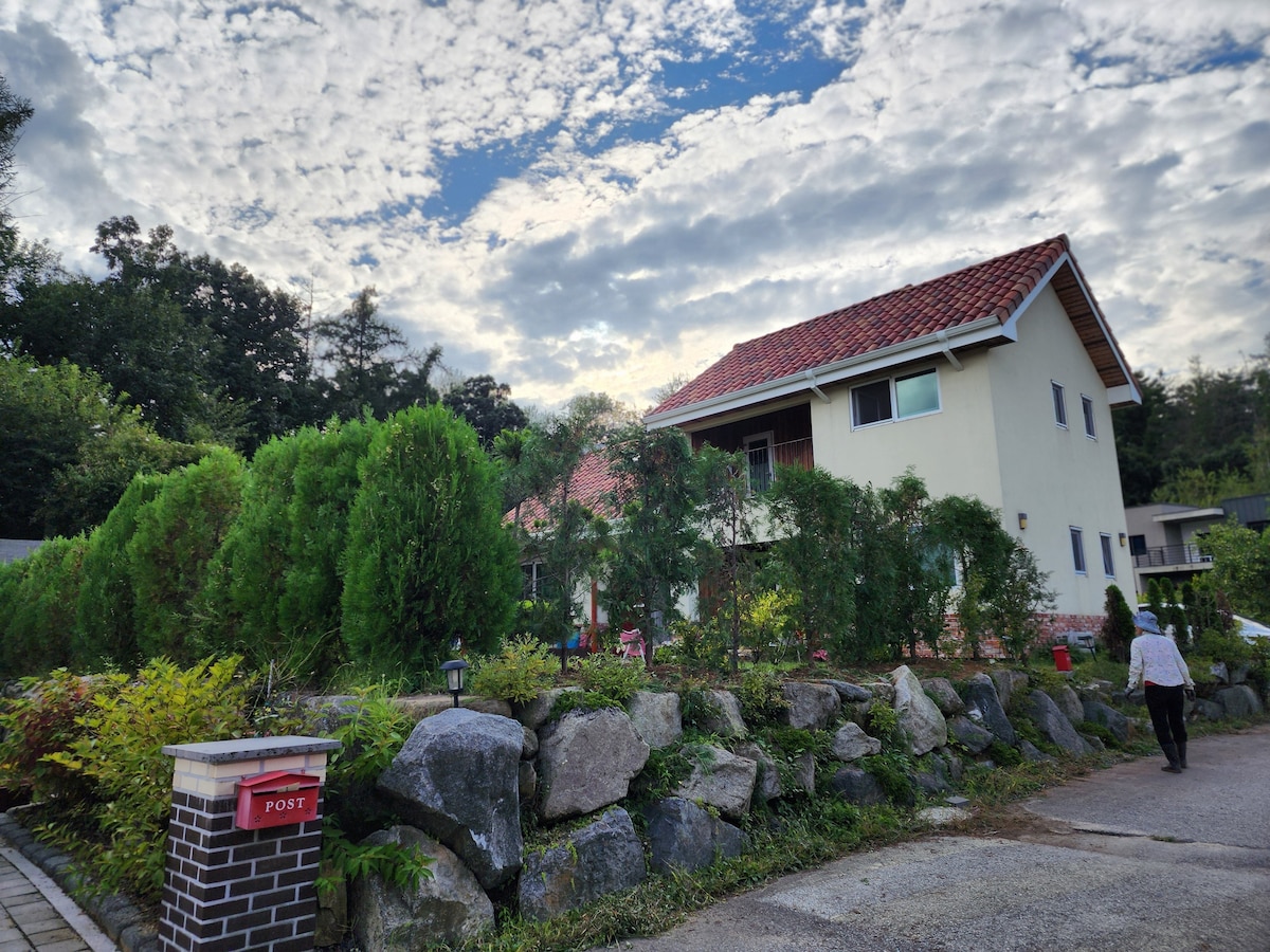 양평 시월이네 별장입니다. 300평 대지에 소나무 잔디정원으로 70평 1,2층 전원주택 입니다. 1,2층 침실4곳에 8명 게스트님 가능하십니다. 1층에는 방1+욕실, 거실 +욕실, 주방공간 분리되어 있습니다. 2층에는 방3 작은 거실+욕실, 미니주방 ,발코니 거실과 주방을 통하는 데크와 스크린하우스(바비큐그릴 식사공간) 잔디위에 디딤돌과 현무암소나무정원 별을 보며 불멍할수 있는 화로 가족 ,지인,회사동료 머물기에 적합한 넓은 공유주택 숙소입니다. 양평치유의숲 자락에서 게스트님의 건강과 평온함을느끼시길 바라며 청정포레스트 시월이네를 만나보네요. Thank you~♡