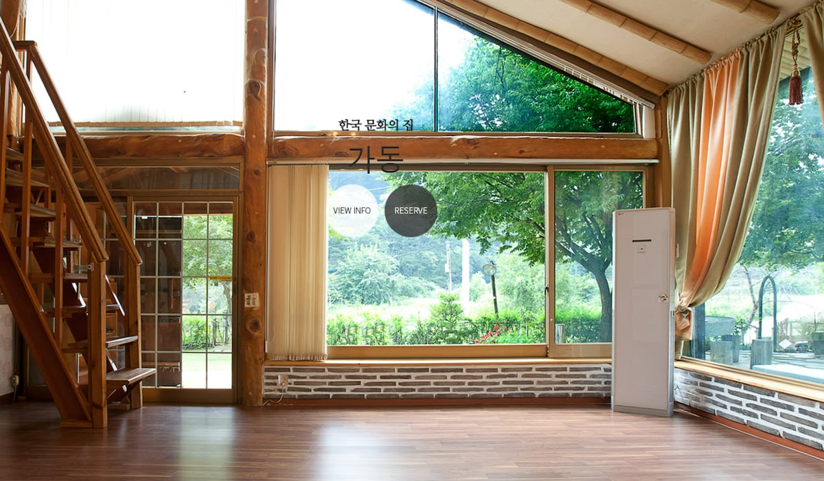 森林里的韩屋独立房屋,价格实惠/2 间卧室、客厅、院子等/基于 2 人入住/免费使用暖炉/最多可容纳 15 人/可额外增加 1 间卧室