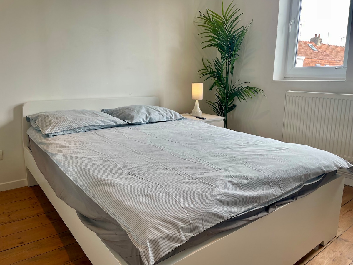 Nous vous proposons une chambre avec salle de bain privative au rez-de-chaussée de notre maison, celle ci donnant sur notre jolie patio arboré dont vous pouvez profiter . Pour un maximum d'indépendance et d'intimité notre cuisine et nos pièces à vivre ne sont pas accessible. Nous sommes situé au coeur de roubaix et à 300m du métro.Pour une envie de shopping, de culture, de loisirs nous avons l embarras du choix. Pour toute question n’hésitez pas à nous envoyer un message