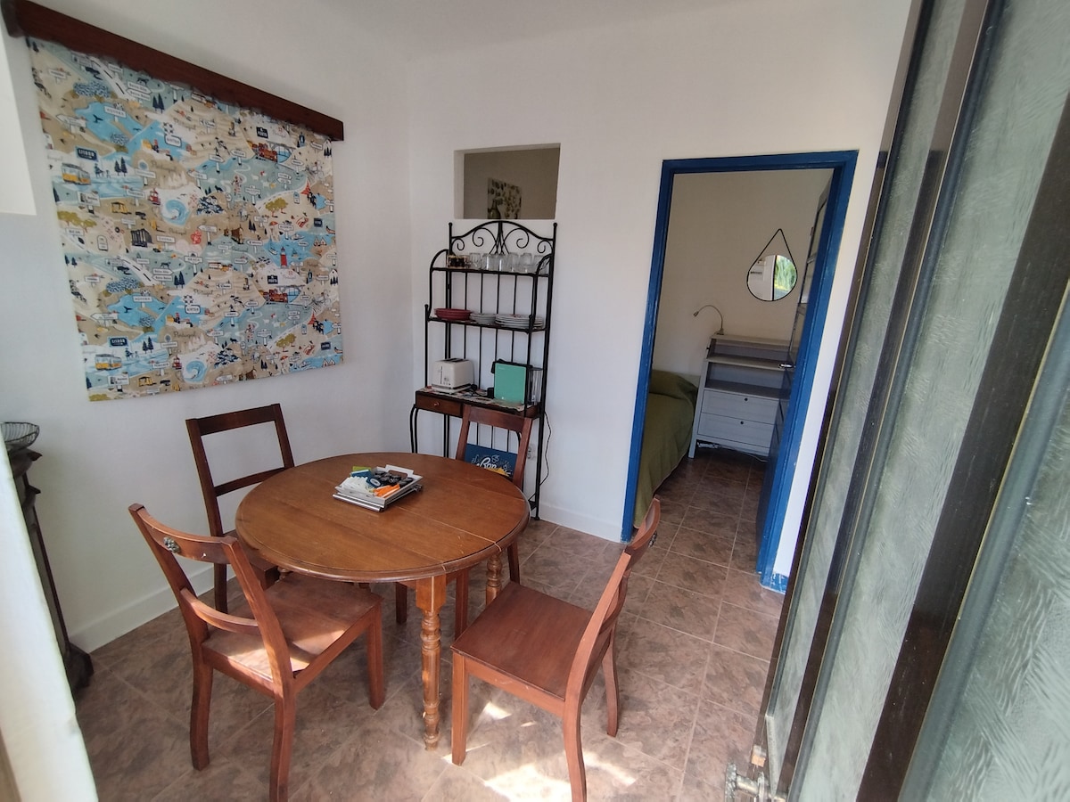 Anexo privado em ambiente descontraído e familiar. Quarto com casa de banho privada e zona equipada com utensílios para pequenas refeições (frigorífico, microondas, cafeteira elétrica e algumas loiças). Wi-Fi. Churrasqueira disponível. 5 min a pé da praia da Granja , 7min a pé da estação de comboio da Granja. 15min do Porto. 5min de Espinho. 3min a pé do supermercado Lidl. Zona de descanso, sem barulho.
