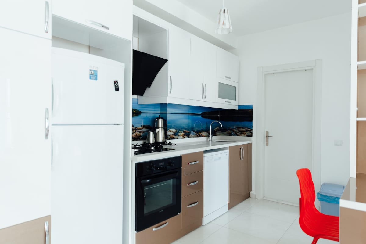 Antalya Konyaaltı Plajına araba ile 4 dakika ve 5M Migros'a 3 dakika mesafede yer alan dairemiz mutfak, salon, yatak odası, banyo, balkon ve döşeli eşyalarıyla konaklama hizmeti vermektedir. 500 Mbps Wifi,Led TV, klima, çamaşır makinesi, bulaşık makinesi,doğal gaz, kombi , petek, ankastre set, mikro dalga fırın, filtre kahve makinesi, türk kahve makinesi, tost makinesi, mutfak malzemeleri, fön makinesi Antalya Akvaryum 3 km Antalya Havaalanı 16 km Antalya Otogar 6 km Süpermarketlere 200 metre