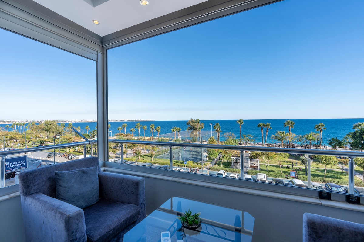 deniz manzaralı lüks,huzur verici,önünde yürüyüş ve bisiklet yolu olan,kafe restorant ve eğlence yerlerine yakın ve şehir merkezinde ferah daire