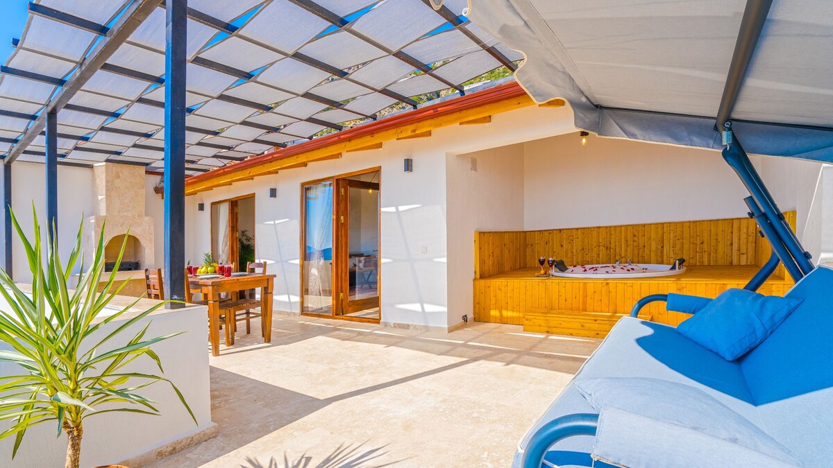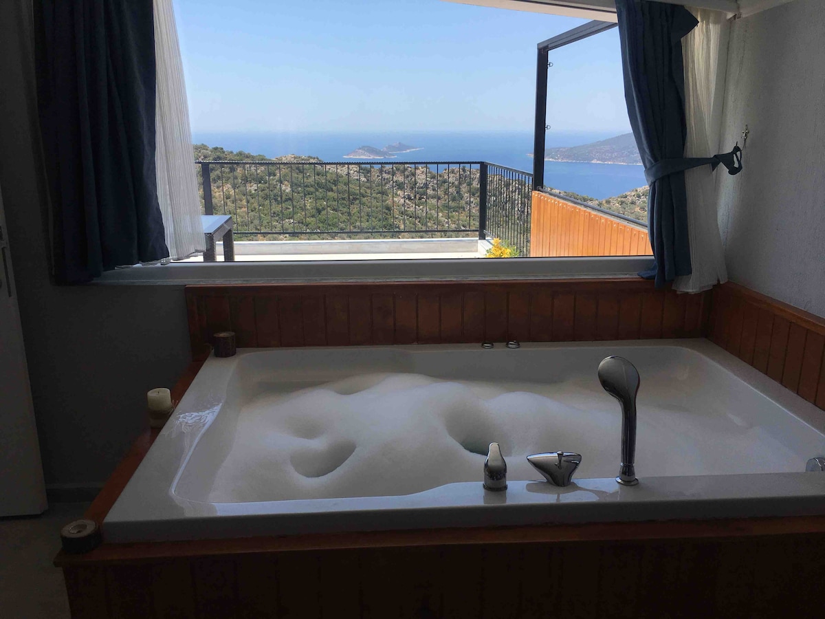 Jakuzili çift kişilik oda, tam donanımlı mutfak, sınırsız wifi, bir adet oturma odası , tv, ücretsiz otoparkı,keyifle zaman geçirebileceğiniz geniş bir terası bulunmaktadır. Denize 4 km, marketlere 50-100 m, Dünyaca ünlü Kaputaş plajına 9 km,Kaş merkeze 27 km, 2020 Patara yılı seçilen kazı ve keşifleriyle ünlü en uzun plajlardan biri olan Patara plajına 21 km uzaklıkta bulunmaktadır.