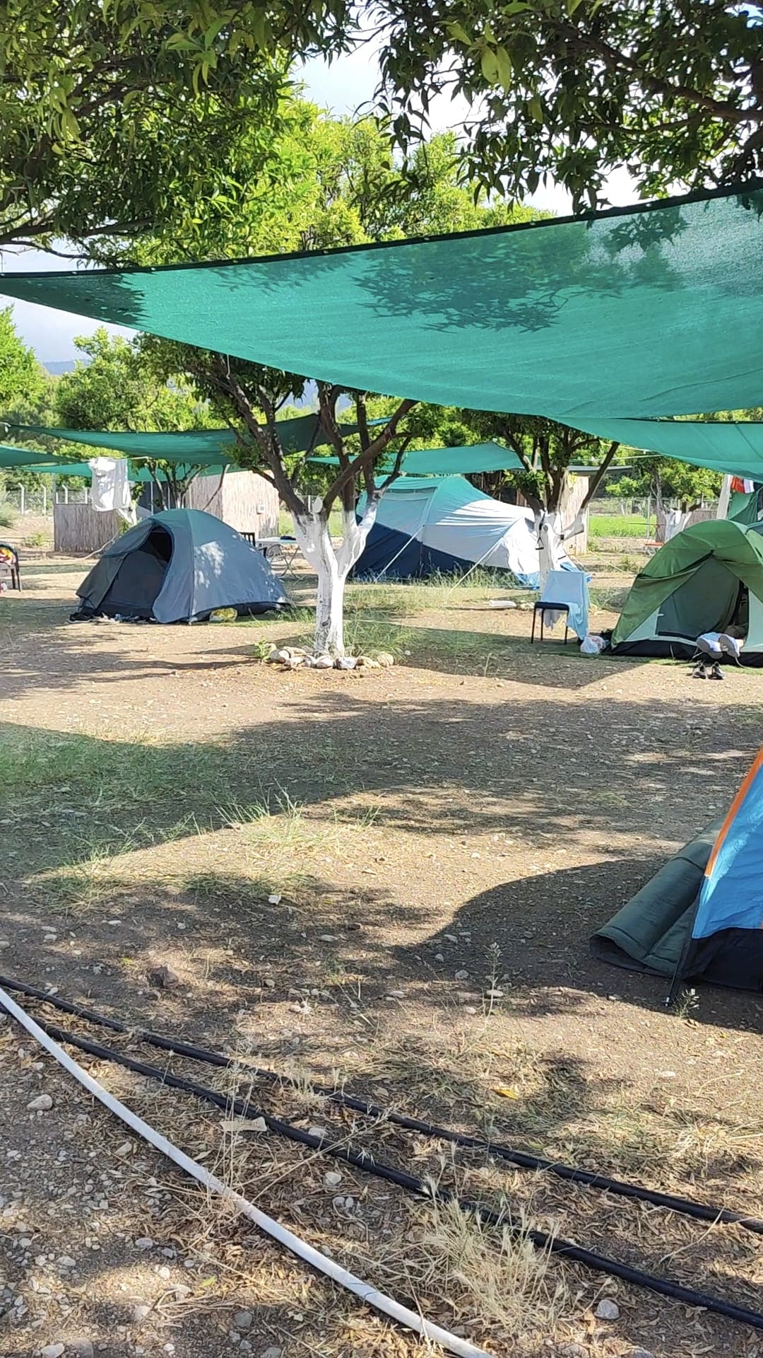 Spacious tent pitch in our orange garden with mountain views, just 7 min walk to the beach. Shaded areas provide comfort even on hot days. Each pitch has access to electricity and fresh water. Guests can use clean shared bathrooms with hot showers, kitchen, BBQ area and strong Wi-Fi. Perfect for travelers who want to enjoy nature with comfort and a peaceful atmosphere.