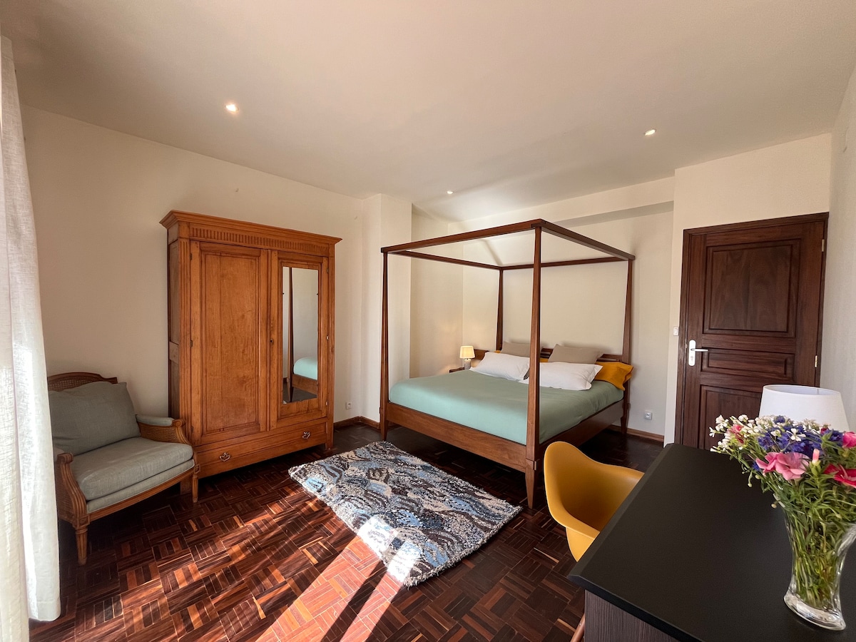Un havre de paix à étages et en bord de route. 5 chambres et 3 salles d’eau + un grand comble salle de jeu. Cuisine aménagée avec appareils électroménagers complet. Un beau jardin + un jardin d’hiver vitré. Le tarif de base est de 78 € par nuit pour jusqu’à 4 personnes. Au-delà de 4 personnes, un supplément de 5 € par nuit et par personne est appliqué (jusqu'à un maximum de 7 voyageurs au total)