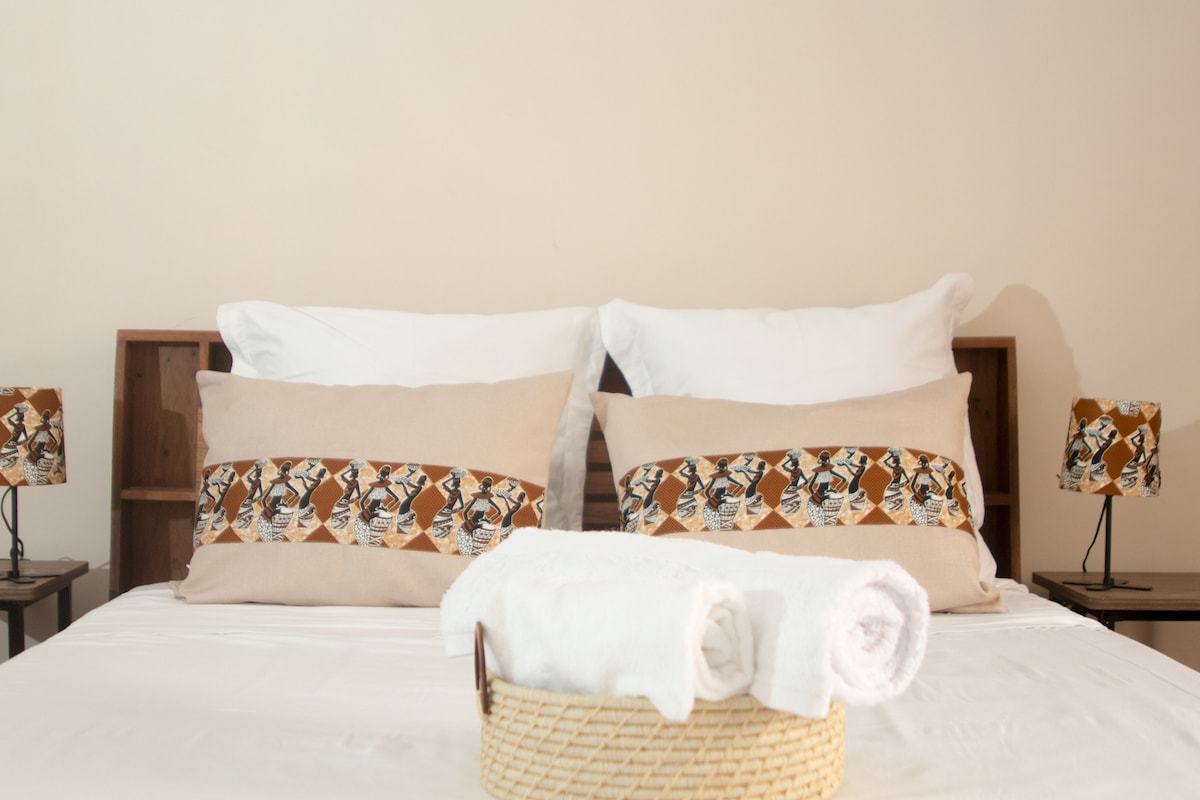 Escape the bustle of the city and unwind in this elegant villa nestled in a secure, quiet neighborhood with friendly surroundings. Ideal for business trips, extended stays, or a relaxing weekend retreat. Highlights: -2 Bedrooms (incl. master suite + triple bunk) -2 Bathrooms with water heaters -Open-plan kitchen & bright living area -A sunny terrace with pergola for outdoor dining or relaxation -A lush private garden -A secure courtyard with parking for up to 3 vehicles -AC in the living area
