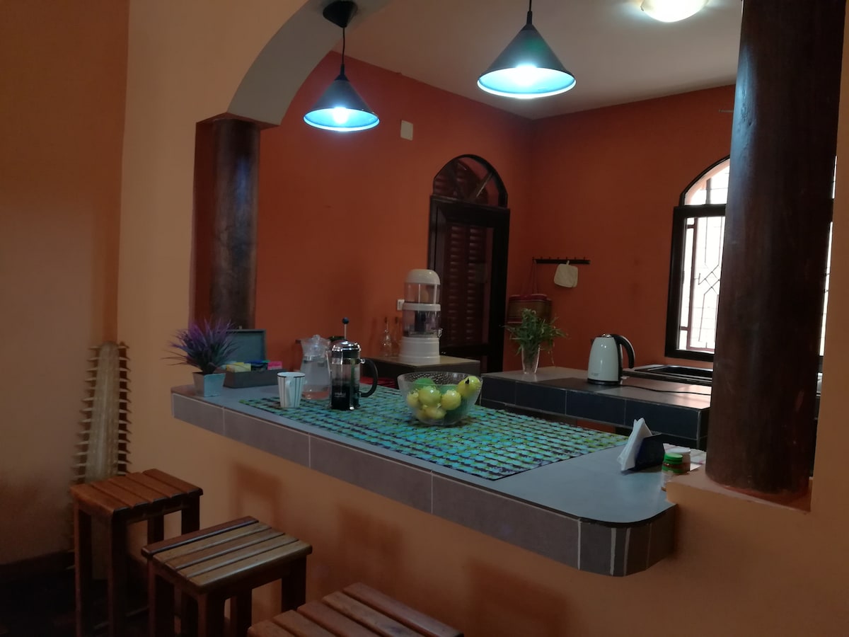 Villa avec 3 chambres, 3 salles d’eau avec eau chaude, une cuisine entièrement équipée, TV, Wifi et une grande terrasse.
