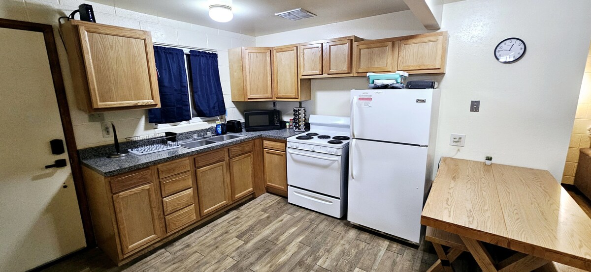 Everything you need for a memorable time when not hiking or on the lake! Comfortable living room, foosball table & Miss Pac-Man Arcade that the kids (& grown ups) will love. Outdoor fire pit, grill and dining area to enjoy the evenings. Free washer/dryer, free parking, full kitchen, 3 bedrooms & 2 bathrooms. Centrally located so a 2 minute drive to restaurants, tours & supermarkets as well as approx 10 mins from both Antelope Canyon, Horseshoe Bend and 15 mins to lake Powell.