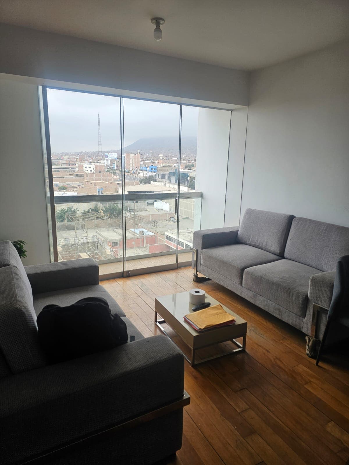 ¡Bienvenido a tu nuevo hogar en Trujillo! Moderno departamento con una ubicación única, muy cerca del centro de la ciudad, hospitales, restaurantes, parques y mucho más. Te Ofrecemos: Cocina equipada. Dormitorio Matrimonial con cama de 2 plazas, baño privado y closet. Otros: Terma, Fibra Óptica, TV de 65 pulgadas, sala estar y vigilancia 24 horas. NO ESTACIONAMIENTO.
