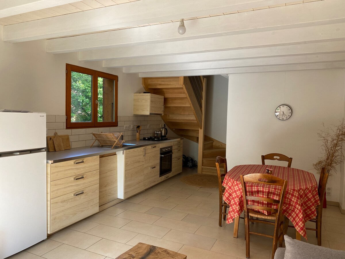 Independent apartment with fully equipped kitchen,air-conditioned bedroom and living room upstairs in a cozy space, walk-in shower, large garden and secure parking. The area is very quiet 500m from a beach of Lake Geneva and close to all commerces A secure place is also available to store bicycles or other equipment.