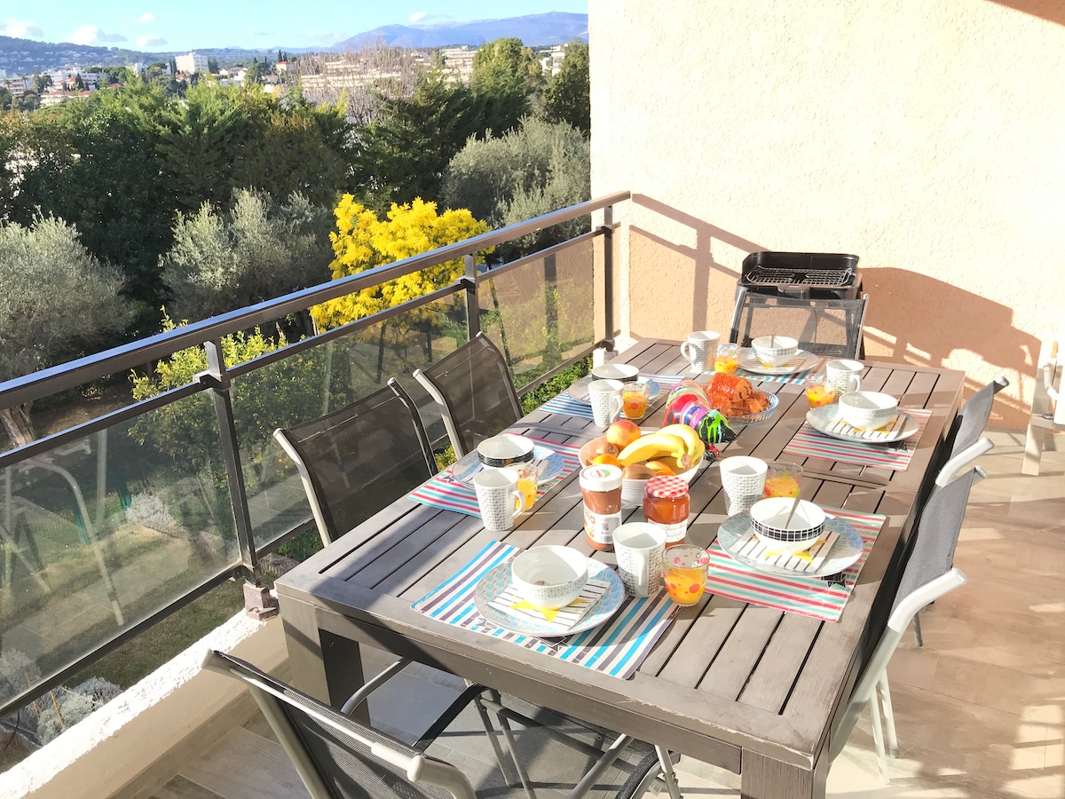 舒适2居室,位于安提布,露台,明亮,靠近海滩,无线网络,靠近火车站