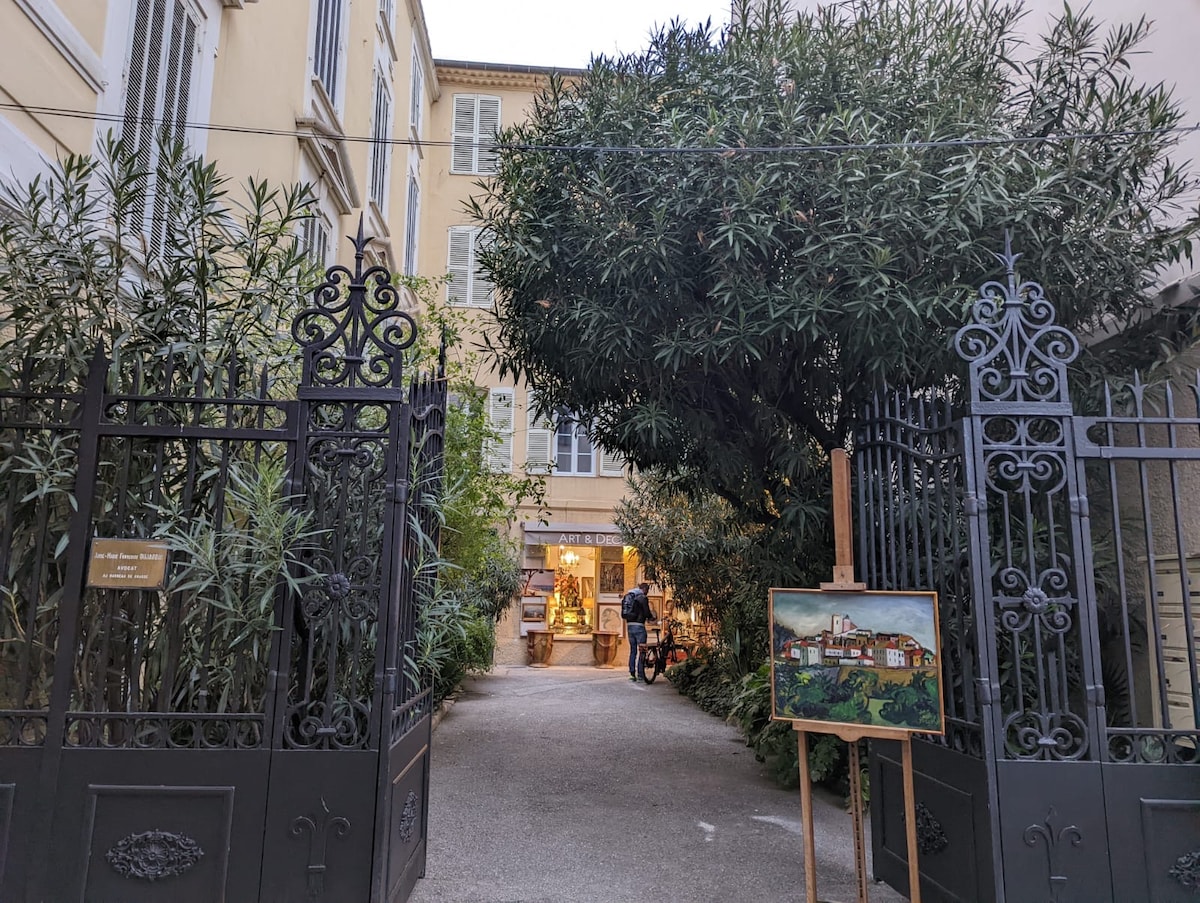 Adorable appartement au coeur d'Antibes, à 2 pas de la vieille ville, tout proche des commerces, à 5 minutes de la gare SNCF, liaison bus aéroport de Nice et surtout à 10 minutes des plages de sable, dont la charmante plage de la Gravette. Etage élevé avec vue sur le Fort Carré et le port, équipement de standing. La Résidence est sécurisée, et très calme. C'est un endroit idéal pour séjourner à Antibes sans voiture.