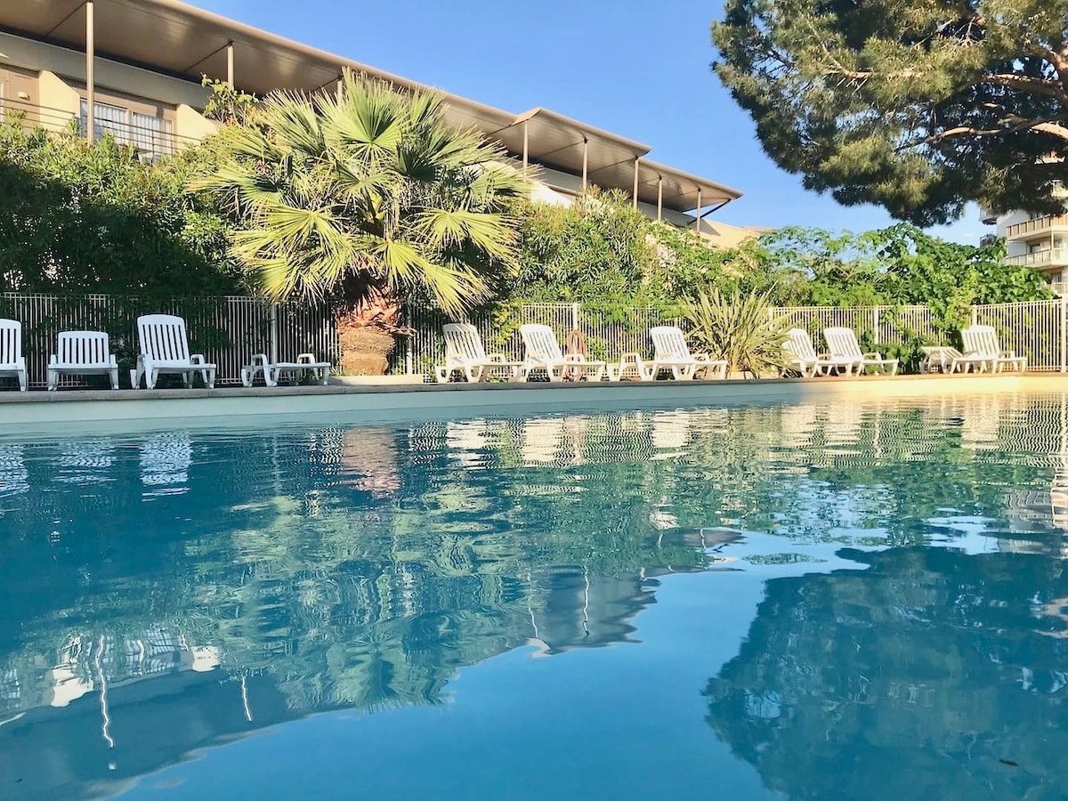 Idéalement situé entre Nice et Cannes ce studio pour 2 personnes vous permettra de passer d'agréable vacances sous le soleil de la Côte d'Azur. Profitez d'un accès facile et rapide à tout type d'activités et commerce au abord de votre logement grâce notamment aux plages, Park d'attraction, Marineland, supermarché, restaurant, gare de ferroviaire, bus reliant Nice à Cannes, Golf club, casino... Niché au deuxième étage d'une résidence calme, vous passerez à coup sur des vacances inoubliable.