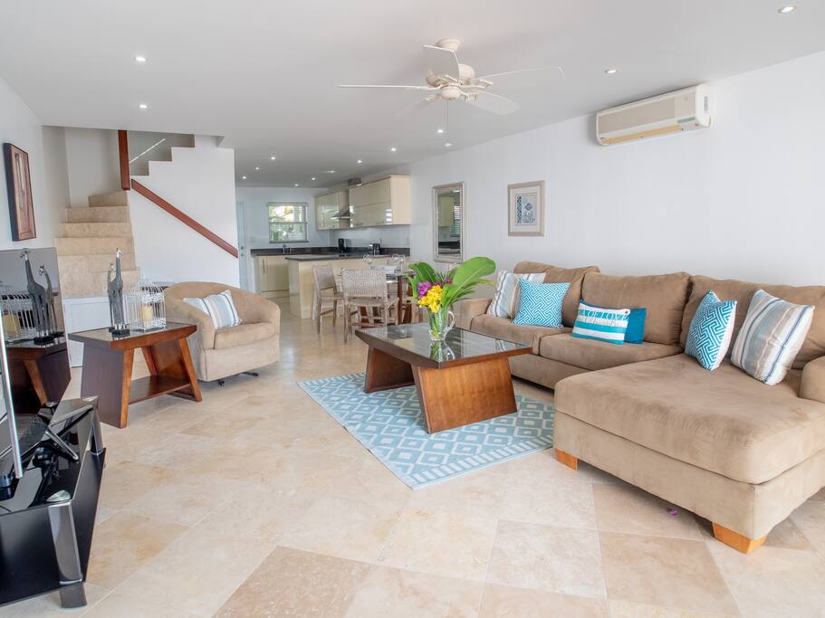 We're excited to welcome you to our lovely villa located on the beautiful Dickenson Bay. Our spacious 2 floor villa is adjacent to an island waterway and less than 100 yards from the breathtaking Caribbean sea. You're within walking distance from several wonderful restaurants. Boat tours and water sports are available, with pick ups for some of these tours departing right from our personal dock. Parking and laundry are available at no extra charge on site.