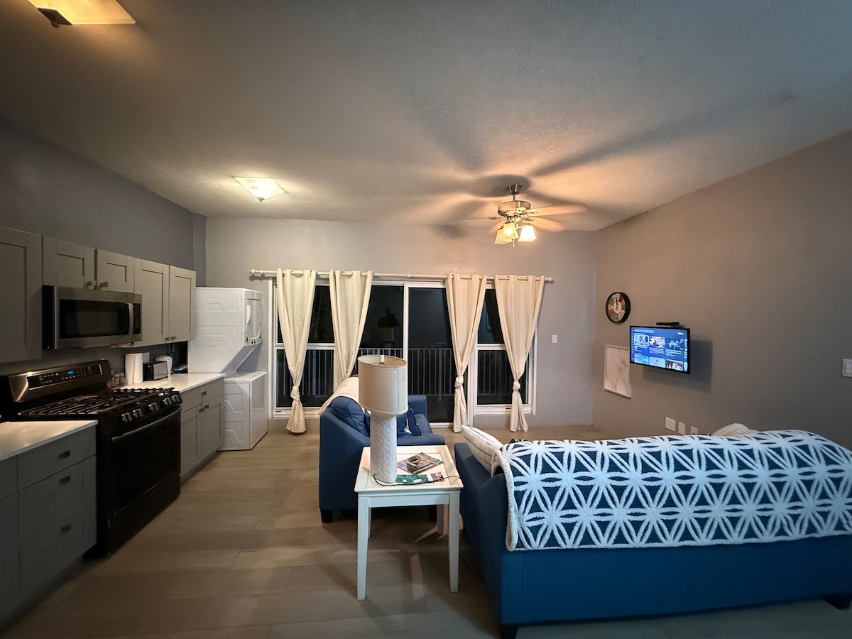 Townhome with 2 bedrooms, 2.5 bathrooms, 1200 sq. feet (111 sq. meters). Water facing private deck and 2 balconies with western sunset views. Fully stocked and equipped kitchen. On-site private parking for smaller cars; parking for larger vehicles a few steps away. Gated community with restaurants, bars and cafes, golf course, marina, supermarket, banks and rental car agencies. 10-minute walk to North Beach and golf course, 20-minute walk to restaurants, shops, other amenities.