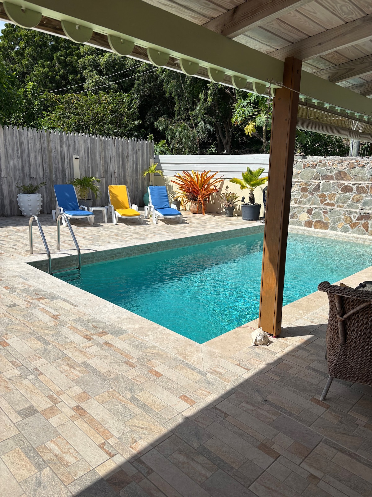 (17% ABST applicable effective 1st January 2024) Retreat to our well-appointed one bedroom villa in the village of New Winthorpes located in the north of the island. 5 minutes' drive from the airport, 5-10 minutes’ drive from the beaches on the north, the city center, shopping, restaurants and entertainment. Enjoy the expansive views of the island’s terrain and our burgeoning tropical garden from the pool deck. Cater to your own palate through the use of the full kitchen.